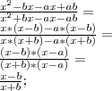 (x^2- bx- ax + ab)/(x^2+ bx – ax - ab)= x(x-b)-a(x-b)/x(x+b)-a(x+b)=(x-a)(x-b)/(x-a)(x+b)=(X-b)/(x+b)