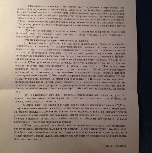 По этому тексту нужно написать сочинение в формате ЕГЭ,проблема,свое мнение,авторская позиция, 2 аргумента,вывод,150 слов