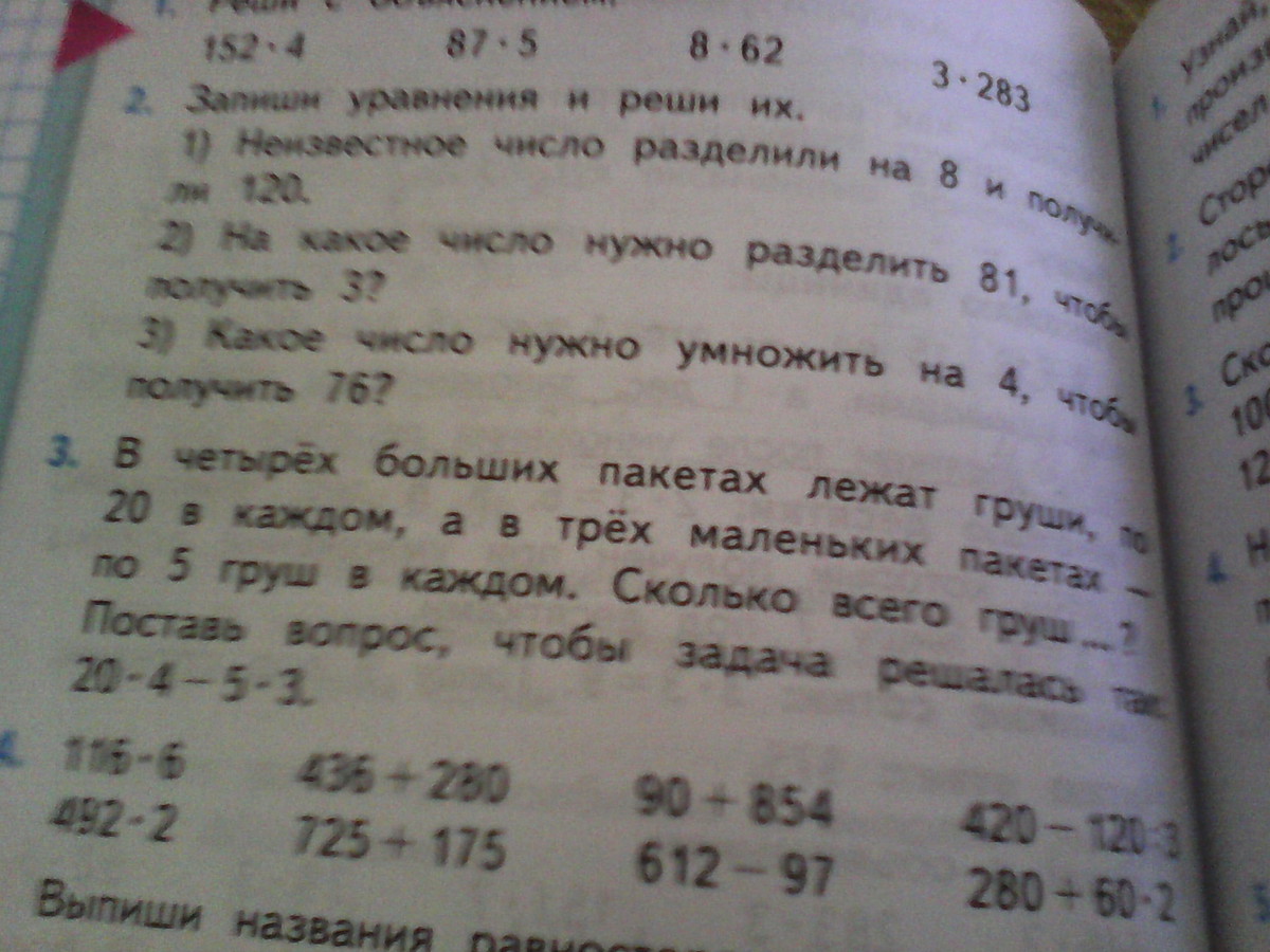 а вопрос можно задать такой: на сколько груш в больших пакета больше, чем в маленьких?