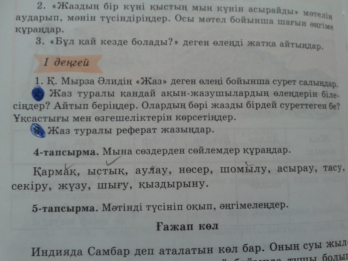 1)жаз туралы Қадір мірза али "жаз", Ш Кудабердиев "жаз келер" Кунанбаев "Жаз" жазады.