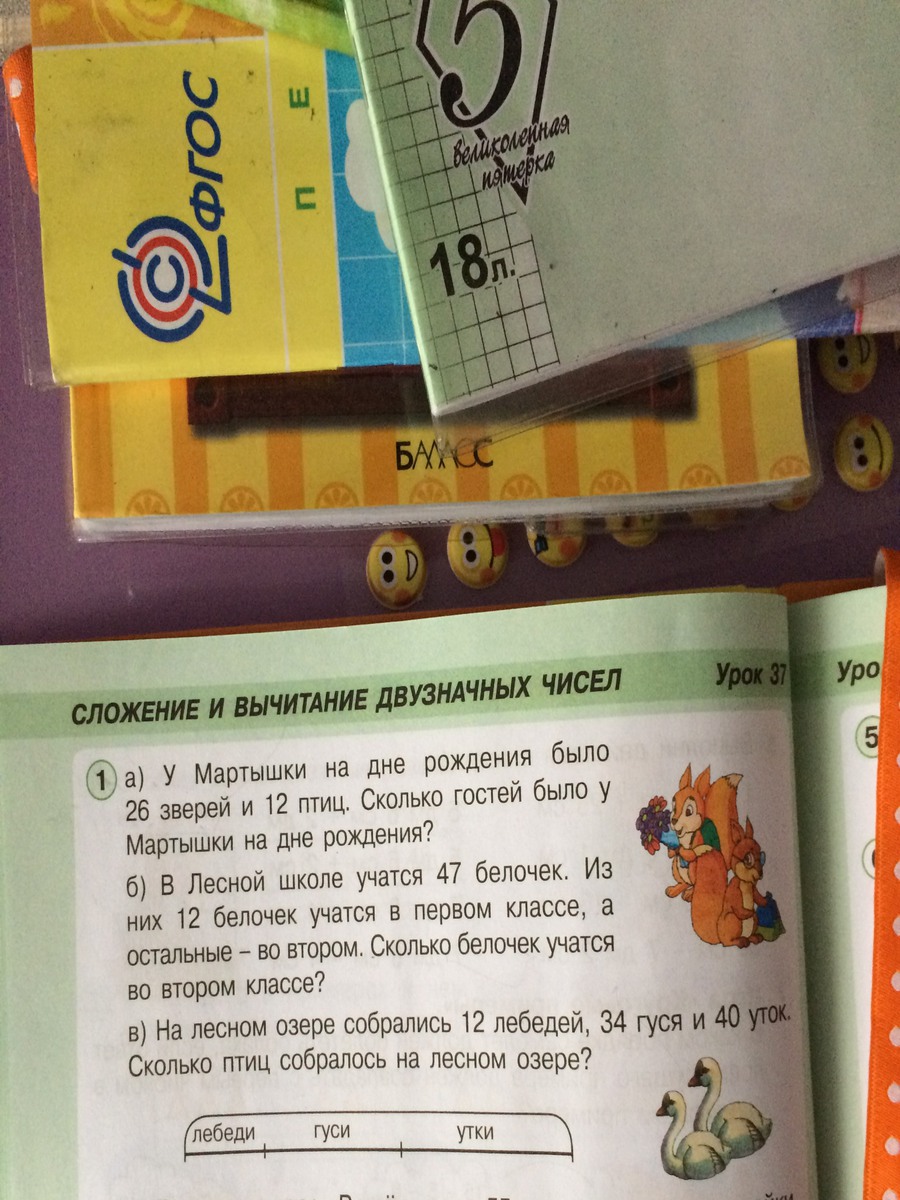 1) 12+40+34=86( птиц ) всего