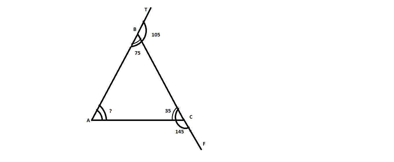 в треугольнике АВС внешние углы при вершинах В и С равны 105 градусов и 145 градусов. найдите градусную меру угла А