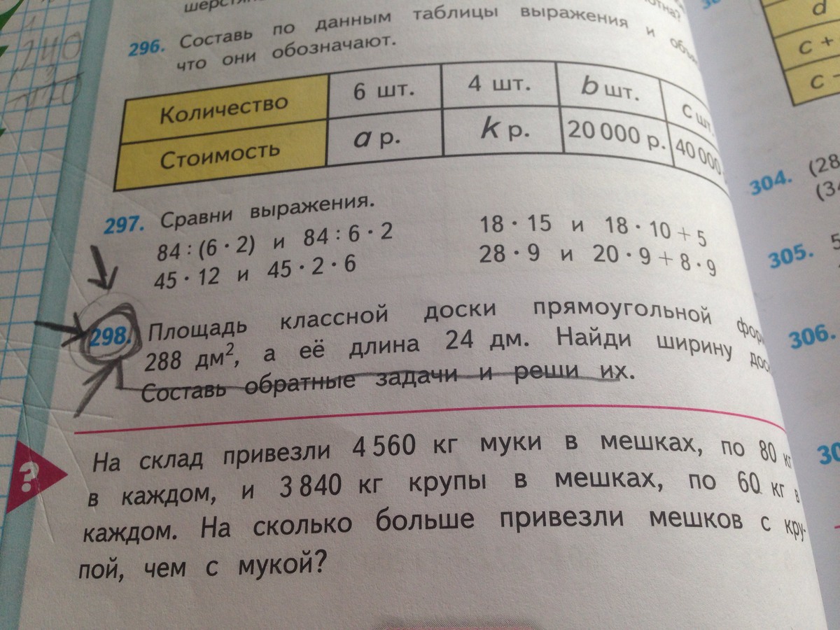 "Площадь классной доски прямоугольной формы 288 квадратных Дм , а её длина 24 дм. Найди ширину доски." Пожалуйста помогите!