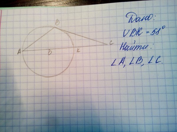 Дуга BK = угол BOK = 58 градусов, вписанный угол BAK = A = 58/2 = 29 гр.