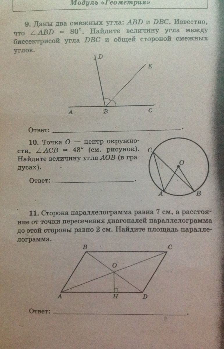 9) Углы ABD и CBD смежные и по свойству их сумма равна 180 градусам. Следовательно CBD равно 1)180-80=100 градусов. BE является биссектрисой угла CBD, а по свойству биссектрисы угла она делит угол пополам. Следовательно 100 : 2=50 градусов угол EBC.