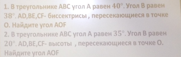 2)OFвысота⇒ΔACFпрямоугольный⇒<ACF=90-<A=90-35=55