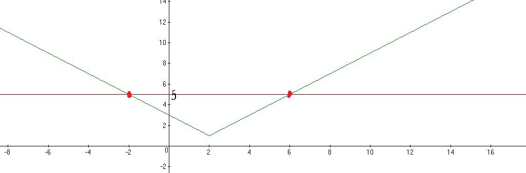 из графика видно, что точки пересечения будут (-2;5) и (6;5)