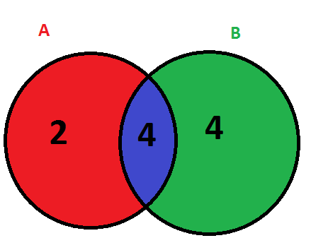В некоторого опыта событию А благоприятствуют 6 элементарных событий,событию В-8 элементарных событий. 10 элементарных событий благоприятствуют событию АUВ.Сколько элементарных событий благоприятствует событию :