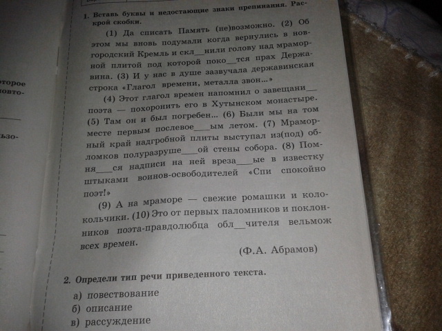 2)тип речи - повествование с элементами описания