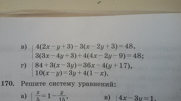1)4(2х-у+3)-3(х-2у+3)=48,8х-4у+12-3х+6у-9=48, 5х+2у=45,