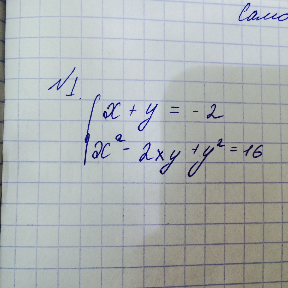 х+у=-2 и х²-2ху+у²=16