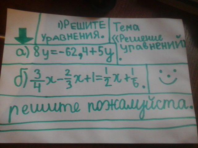а) 8у = -62,4 + 5у 8у -5у = -62,4 3у =-62,4 у = -20,8