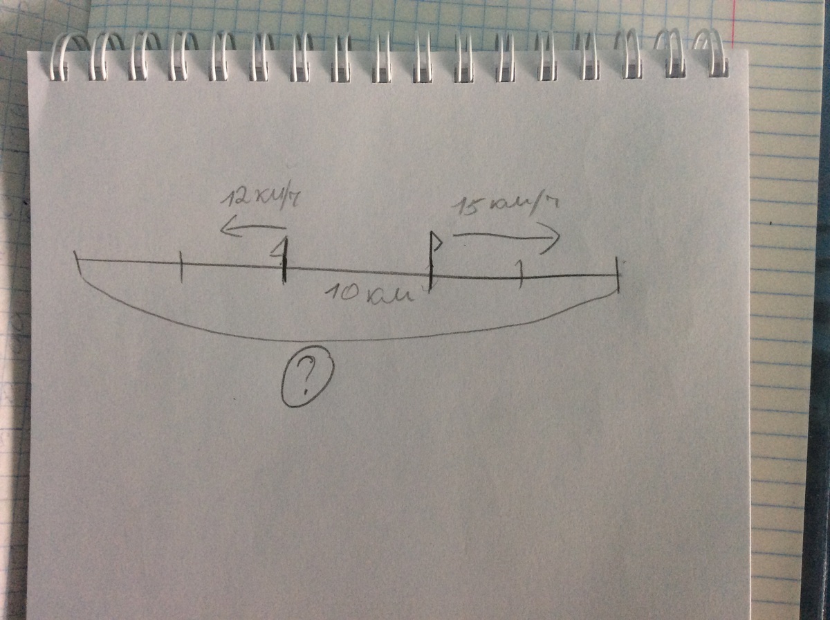 Между двумя поселками растояние 10км.Из этих поселков одновременно в противоположных направлениях выехали два велосипедиста.на каком расстоянии они окажутся через 2часа,если их скорости были 12км/ч и 15км/ч ?
