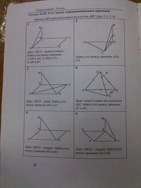 2)на рисунке отмчено, что MB = BA, следовательно треугольник равнобедренный, то есть углы М и А равны, а как мы уже выяснили, МВ перпендикулярна любой прямой в плоскости (АВС), а значит она перпендикулярна прямой BA, и угол МВА равен 90 градусов, а углы М и А равны 90/2=45 градусов.