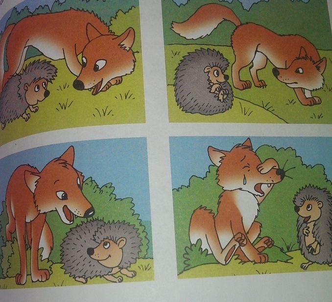 Феня от испуга свернулся в клубочек. Лиса открыла рот, чтобы съесть ежика. Но Ларисе не удалось совершить задуманное - она укололась об иголочки ежика. Феня обрадовался, а затем убежал прочь. Лиса еще долго плакала, зато впредь ежиков не трогала.