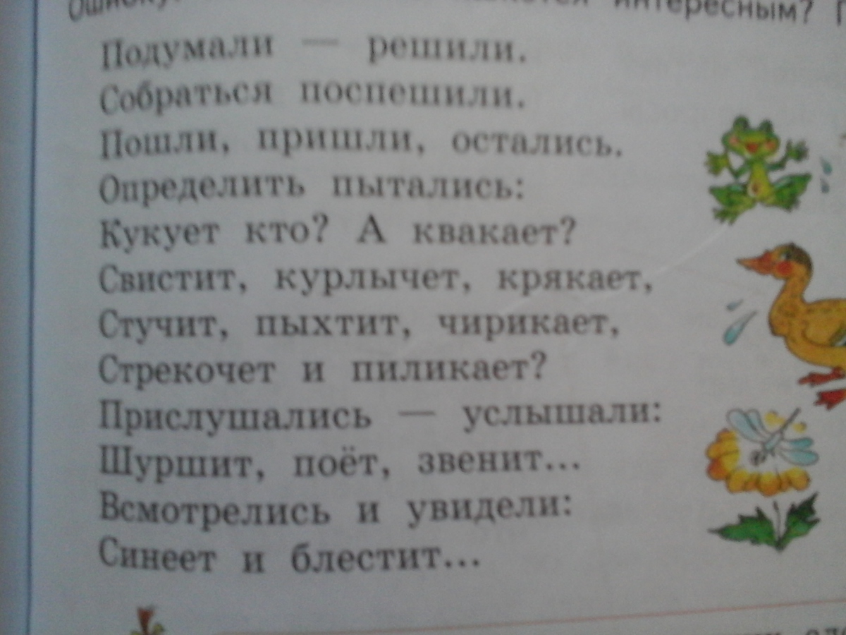 настоящего времени-кукует, квакает, свистит, курлычет, поёт.