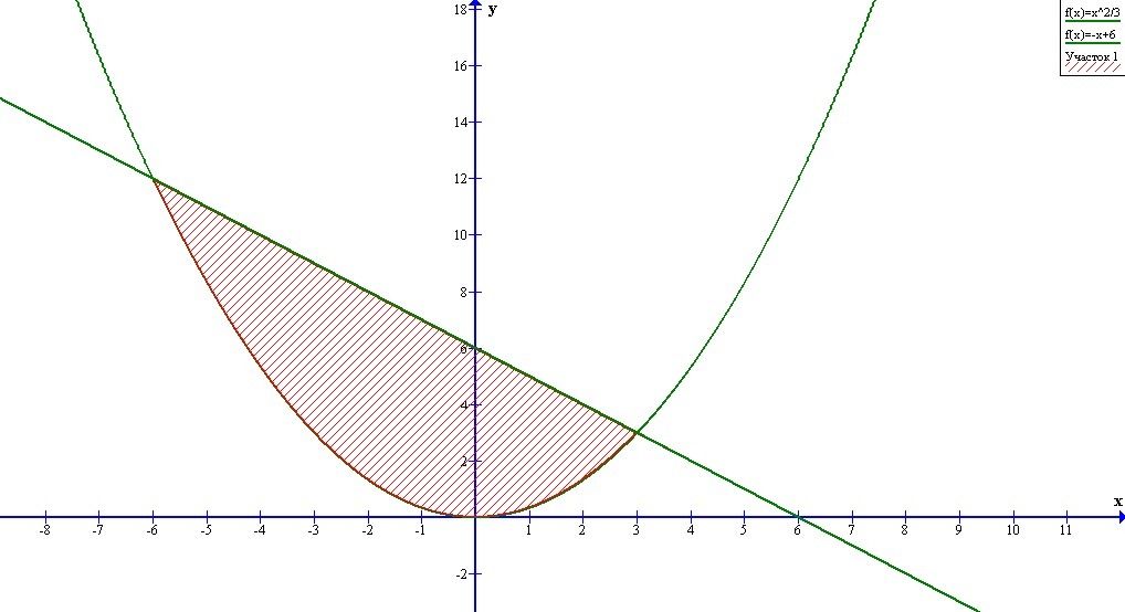 Прямая у = -х + 6 расположена выше графика функции y = x²/3, значит