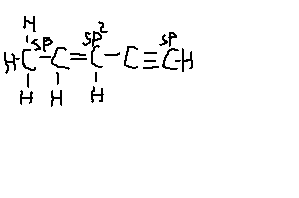 определите виды гибридизации в молекуле, нарисуйте строение молекулыс учетом гибридизации пентен-2-ин-4