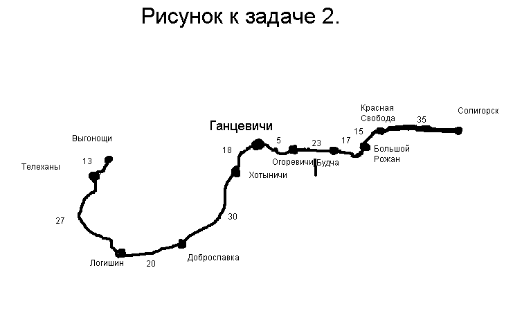 2)Турист вышел из одного из населённых пунктов и пошёл по шоссе в Ганцевичы.(Рисунок внизу)Он рассчитал, что если идти со скоростью 4,5 км/ч, то он опоздает на условленную встречу на 18 минут,а если будет идти со скоростью 5 км/ч, то придёт раньше на 6 минут. Из какого населённого пункта вышел турист?