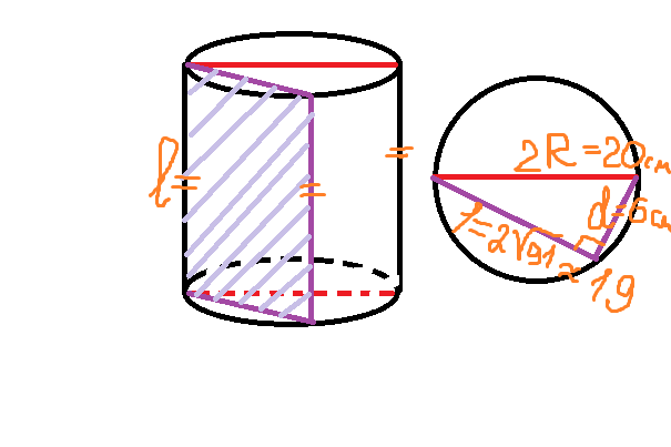 .Прямой круговой цилиндр пересечен плоскостью так, что в сечении получается квадрат. Найти площадь боковой поверхности цилиндра, если известно, что радиус основания равен 10см, а расстояние от сечения до оси цилиндра 6см.