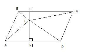 Внутри параллелограмма ABCD выбрали произвольную точку Е. Докажите, что сумма площадей треугольников BEC и AED равна половине площади параллелограмма.