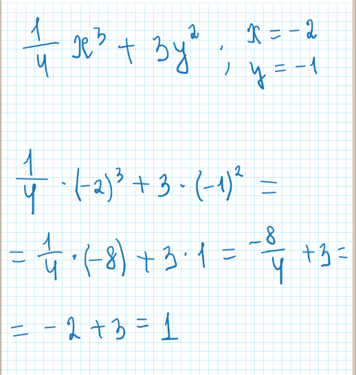 найти значение выражения одна четвертая икс в кубе плюс 3 игрек в квадрате при равно икс равно минус 2 игрек равно минус один