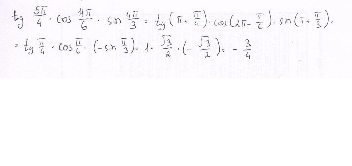 = tg π/4 * cos π/6* (-sin π/3) = 1*√3/2 *(-√3/2) = -3/4 = -0,75