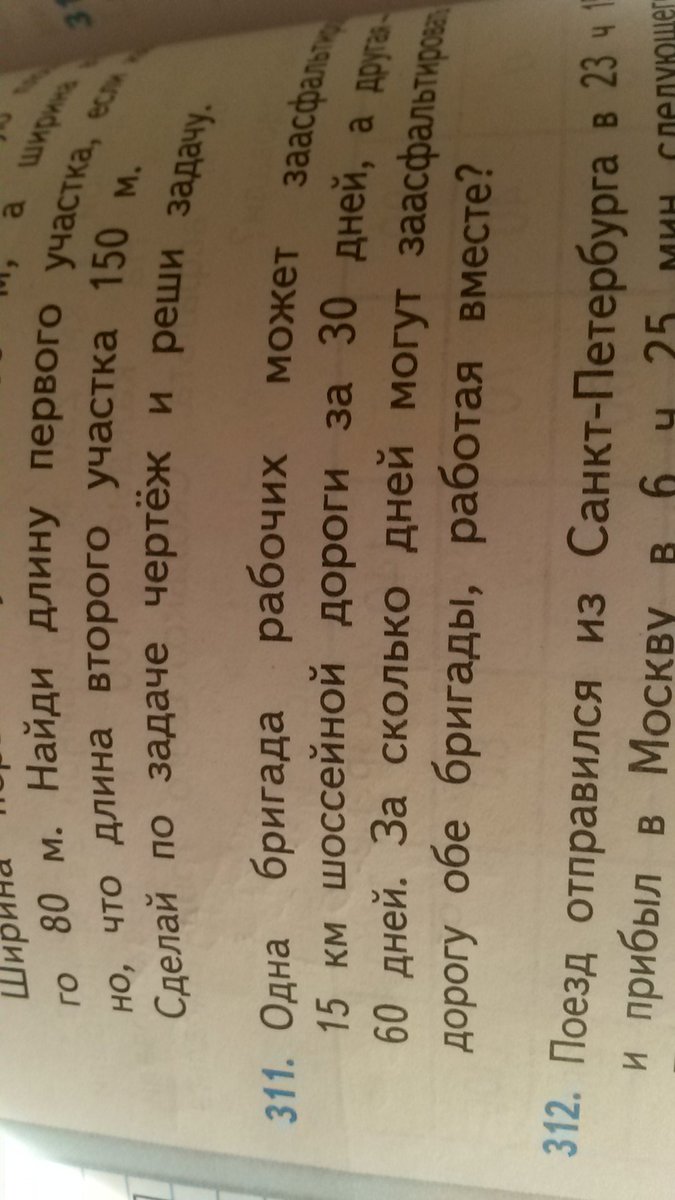 2) 15 : 60 = 0,25 км (асфальтирует вторая бригада за один день)