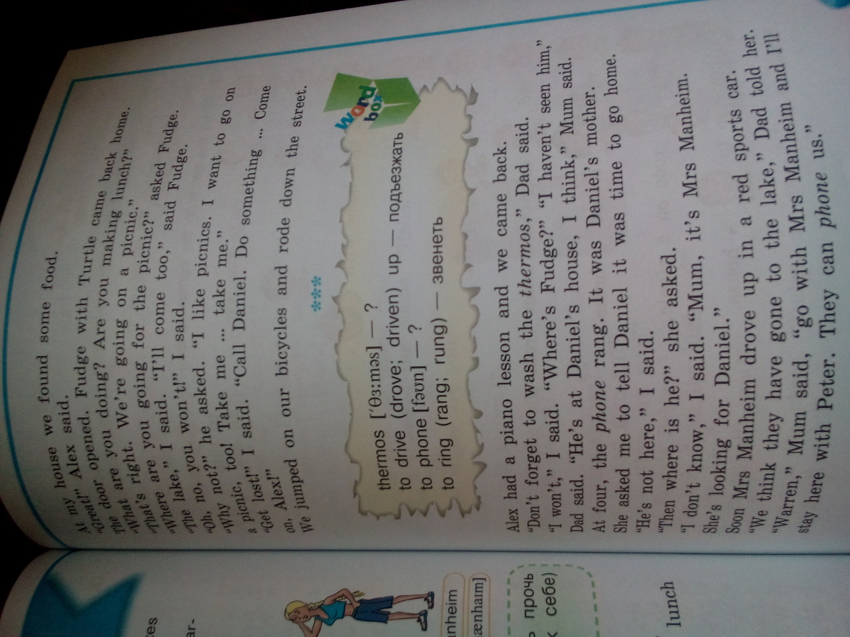 "Я не забыл," сказал я. "Где Фадж?" "Я его не видел," сказал папа. "Я думаю, он у Данила дома," сказала мама.