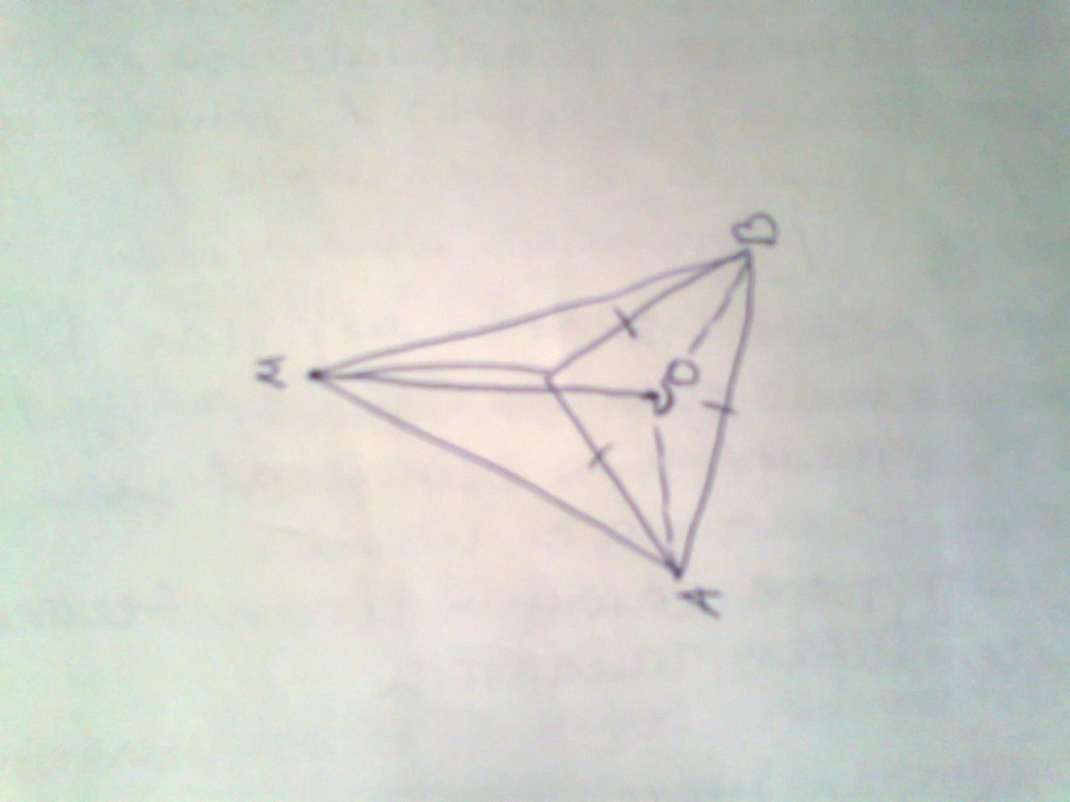 так.как. точка М равноудаленна от всех сторон тругольника, то угол высоты из М с плоскостью будет составлять 90' полученная фигура называется ПРИЗМОЙ