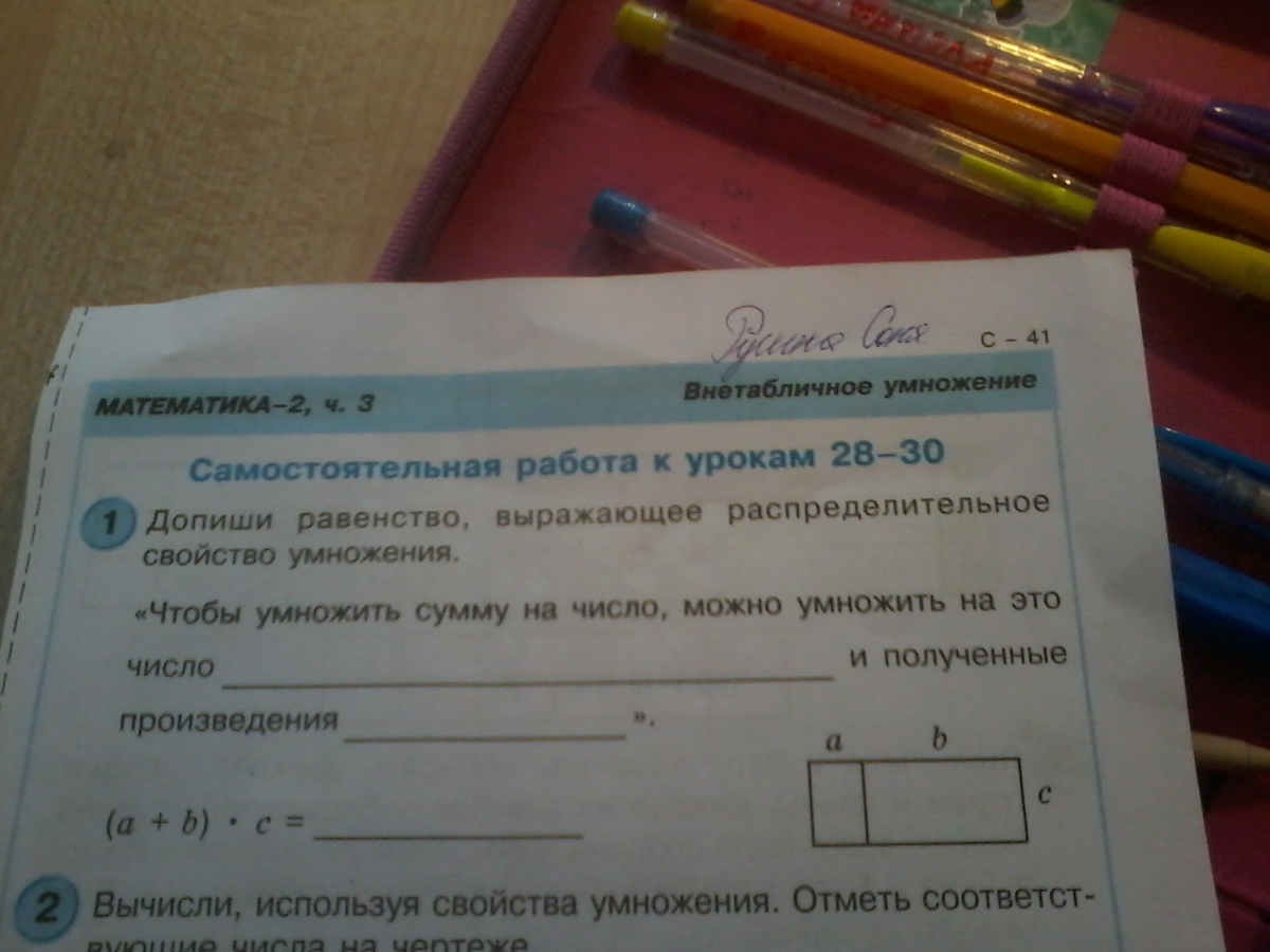 Чтобы умножить сумму на число,можно умножить на это число каждое из слагаемых и полученные произведения сложить.