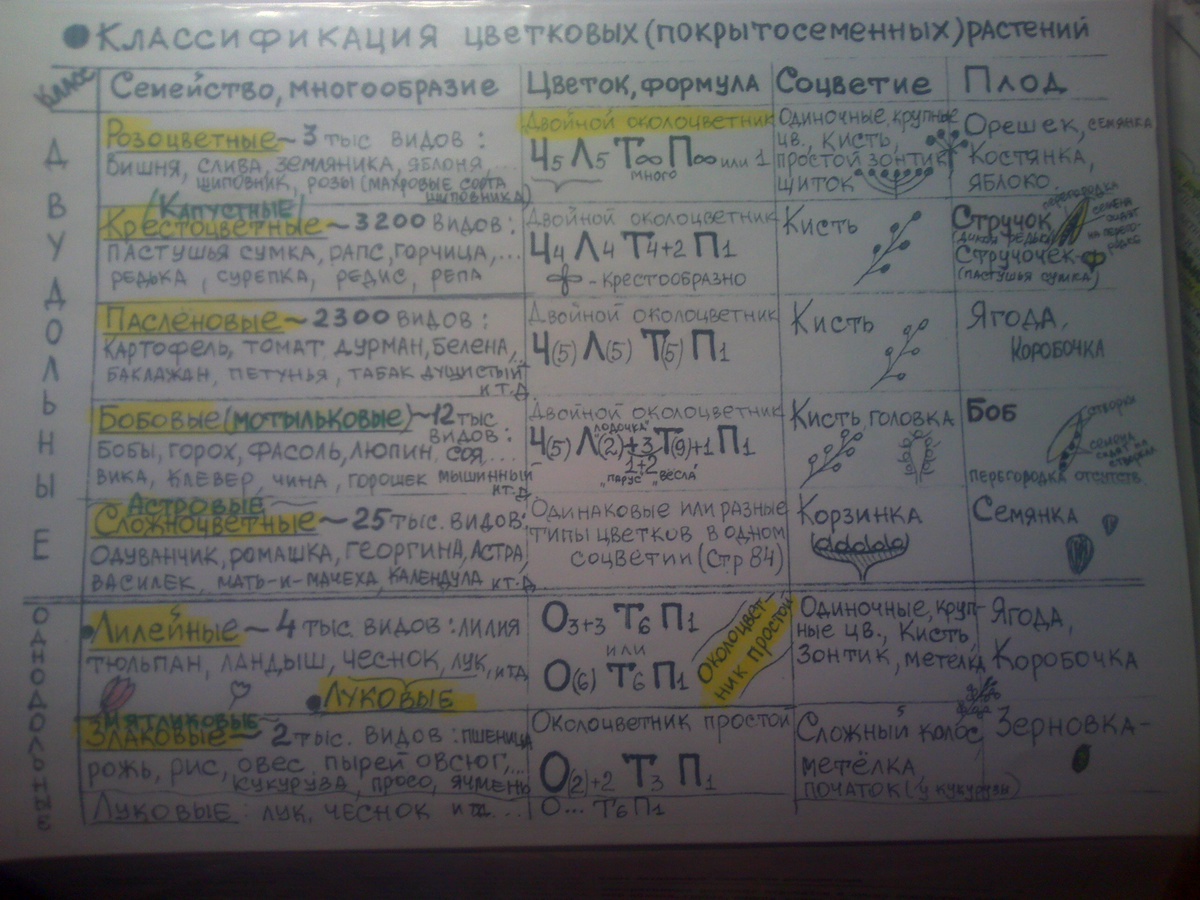 Кстати,я сама недавно закончила проходить эту тему,там также и семейство Паслёновых,Розоцветных,Сложноцветных и т.д.,хочу сказать,что я сейчас кину(основные признаки,которые должны знать,в файле) классификацию растений,мы её делали в школе...