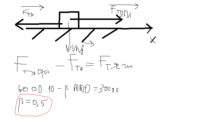 μ = 30000 Н / (6000 кг*10H/кг) = 0,5