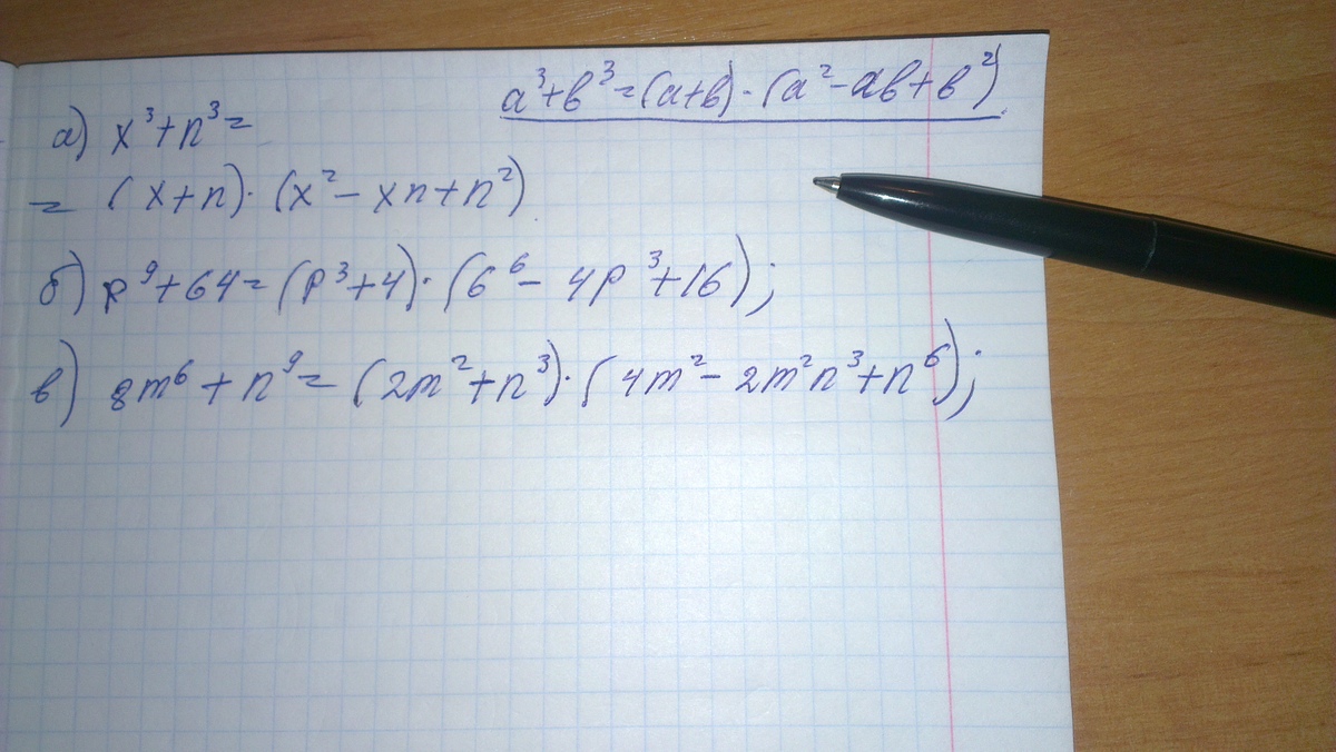 Зная формулу суммы кубов можно сразу же представить данные выражения в нужной форме, все на скриншоте: