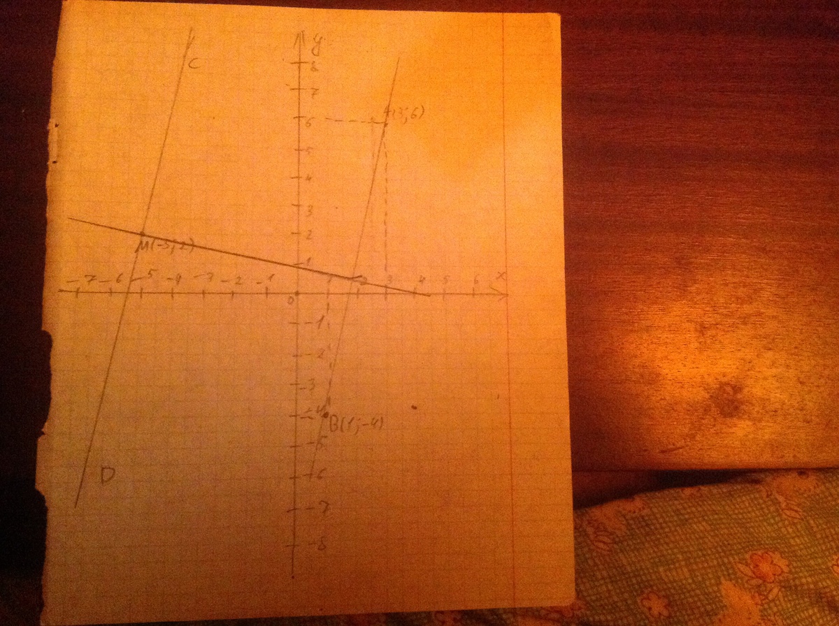 Отметьте на координатной плоскости точки А(3; 6),В(1; -4) и М(-5; 2).Проведите через точку М прямую CD,параллельную прямой AB и прямую EF, перпендикулярную прямой АВ
