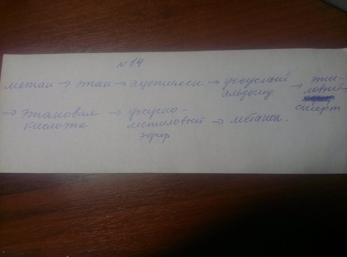 метан-этан-ацитилен-уксусный альдегид-этиловый спирт-этановая кислота-уксусно метиловый эфир-метанол