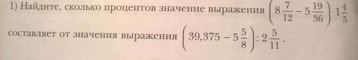 имеем два выражения (8 7/12 - 5 19/36 ) *1 4/5 и (39,375 - 5 5/8) /2 5/11