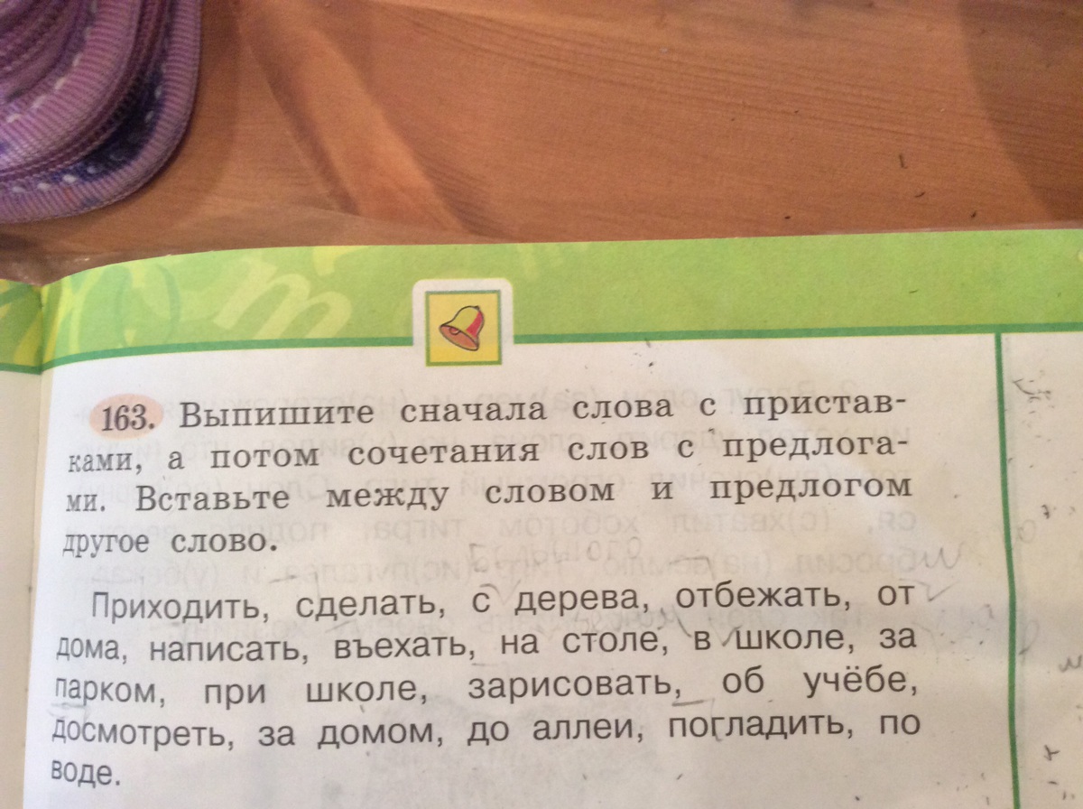 С дерева,от дома,на столе,в школе,за парком,при школе,об учебе,за домом,до аллеи,по воде.