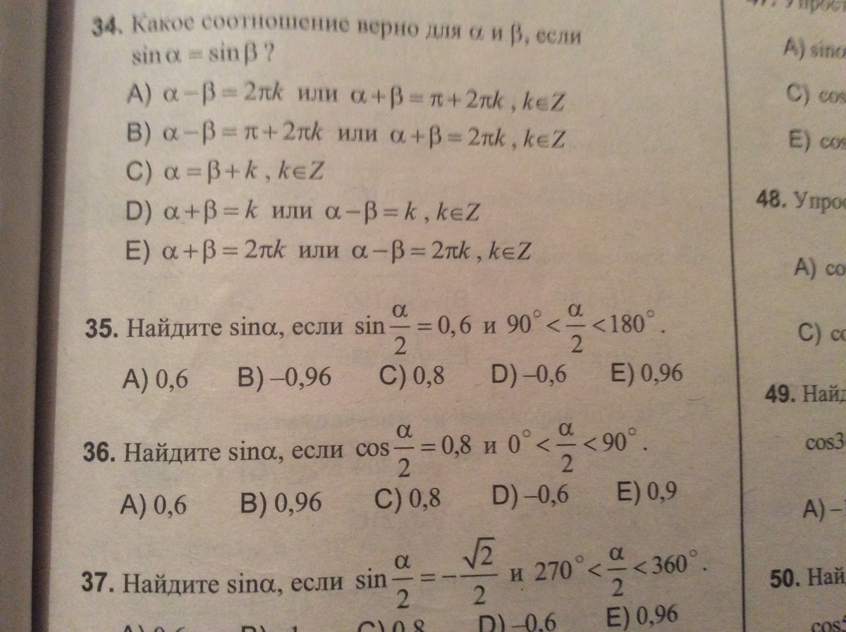 sin(α/2) = 0,6 π/2 < α < π 2 четверть