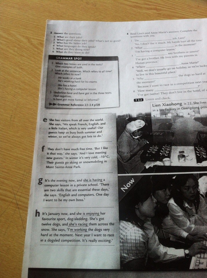 Е. К неё приходят посетители со всего мира.Она говорит:"Мы говорим по-французски,по-английски и немного по-итальянски,который очень полезен. Наши гости дают нам работу всё лето и зиму,поэтому у нас всегда есть,чем заняться."