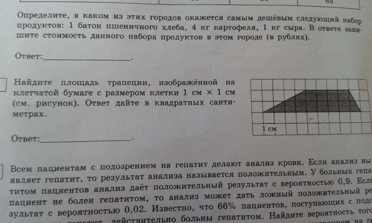 S = (4 + 9) : 2 · 2 = 13 (см²) - площадь трапеции.