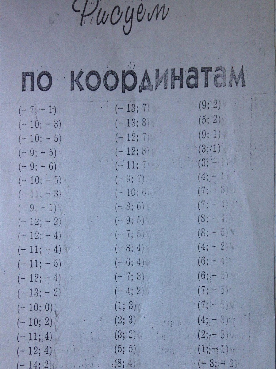 первое число в скобках-координата по иксу (по горизонтальной линни), второе число в скобках -по игрику (по вертикальной линии) и отмечаешь точки-потом их соединяешь