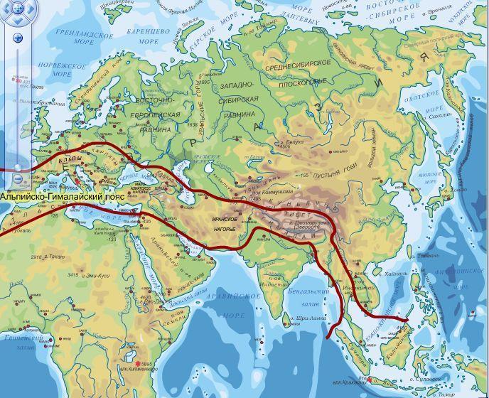 за межами Альпійсько-Гімалайського поясу складчастих гір лежать: