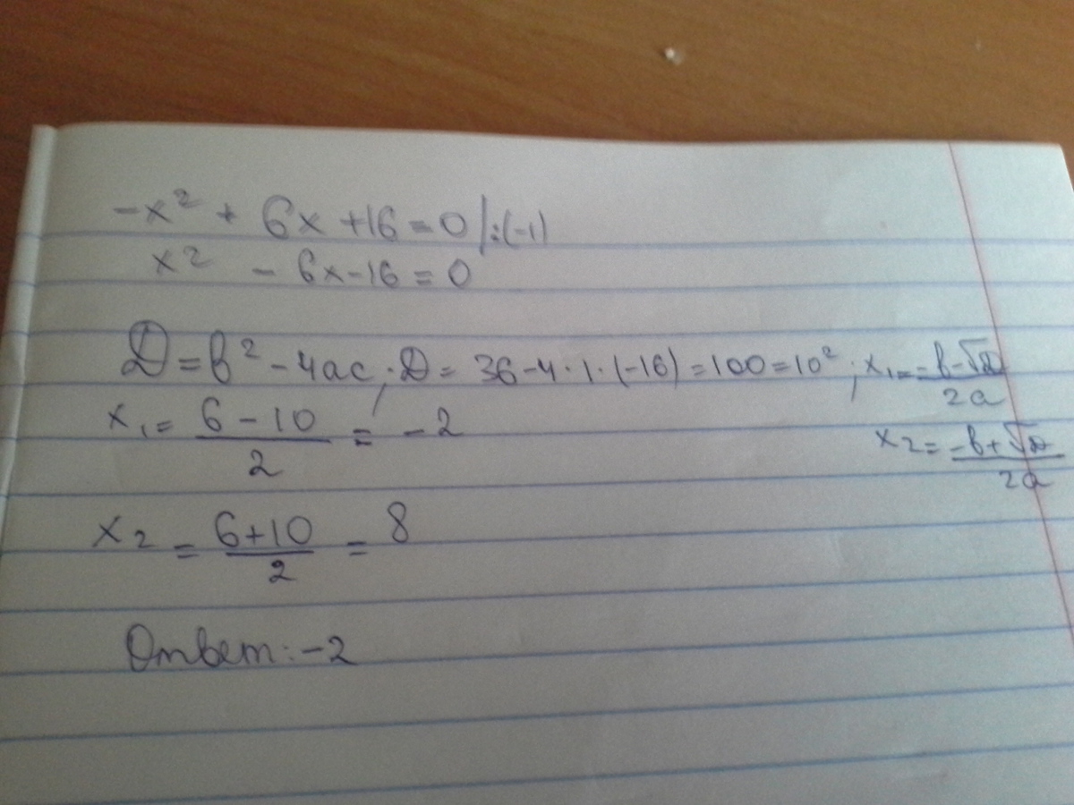 Нужно сейчас ! Решите уравнение -х^2+6х+16=0. Если корней больше одного , в ответе укажите меньший корень .
