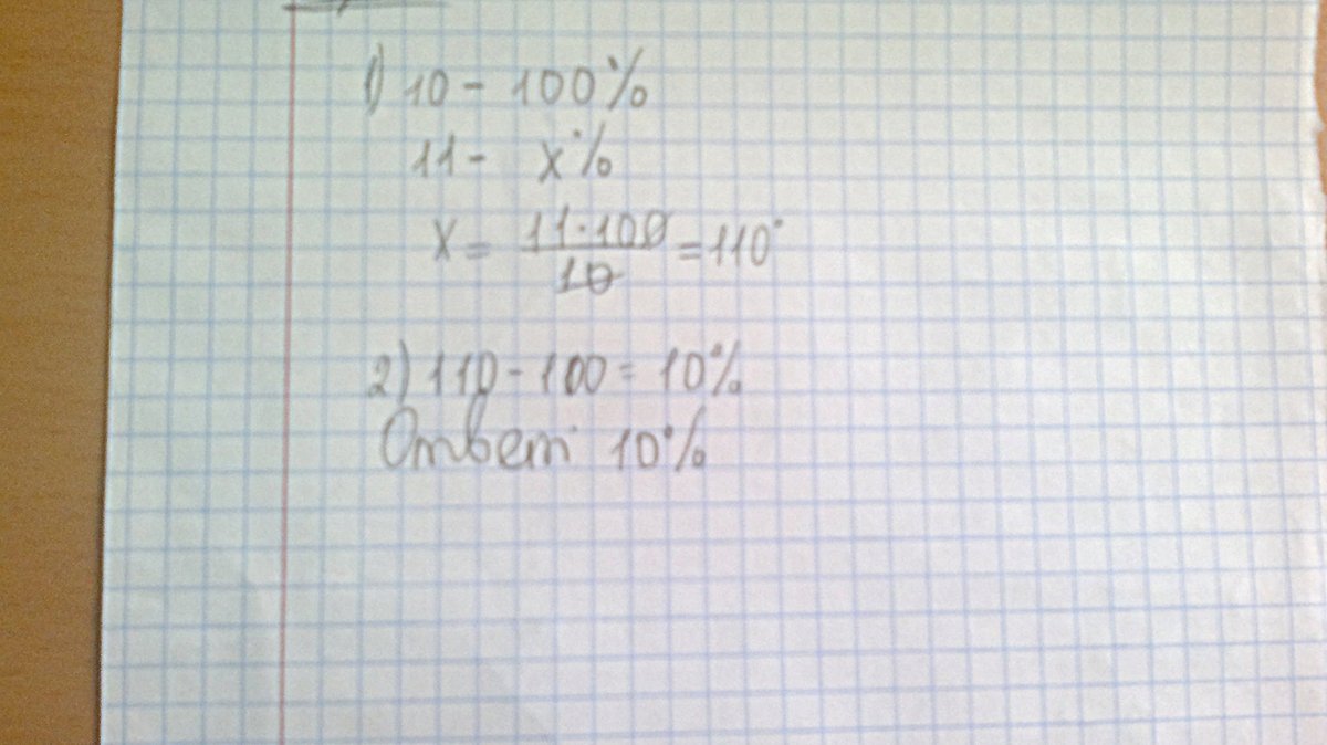 До повышения тарифов за проезд стоимость билета на маршрутном такси состовляла 10рублей а после повышения 11 рублей.На сколько процентов увеличилась оплата проезда?