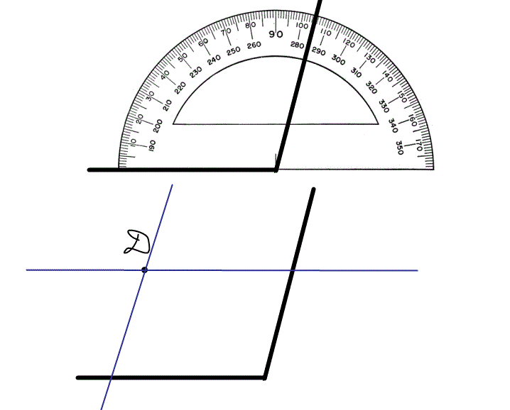 Постройте угол, равный 105°. Отметьте внутри этого угла точку D и проведите через нее прямые, параллельные сторонам угла.