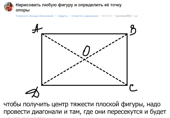 Наверное, в задаче требуется найти не точку опоры, ап центр тяжести плоской фигуры. Рисунок на фото в приложенном файле