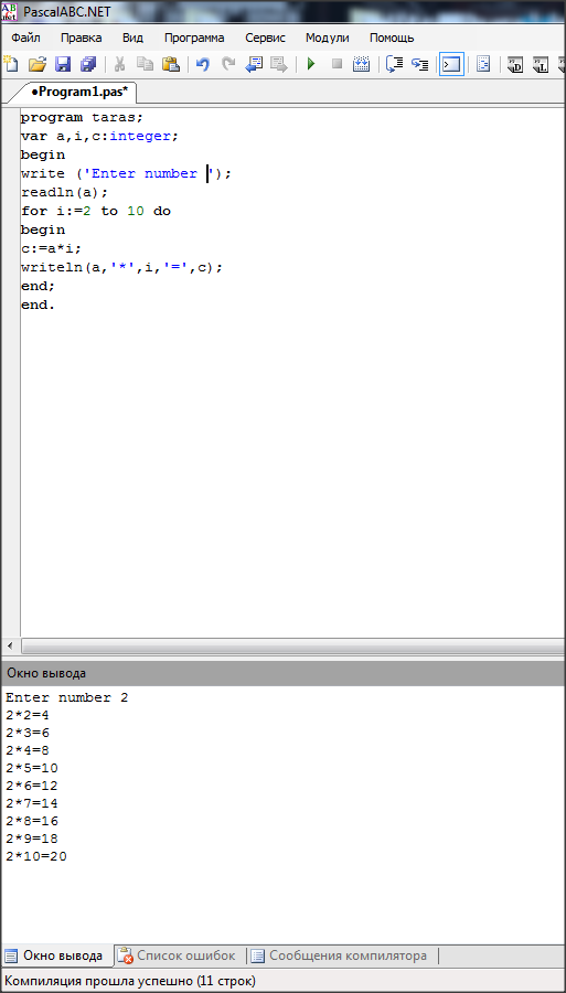 напишите программу которая выводит на экран таблицу умножения на n (n - целое число в диапазоне от 2 до 10, вводимое с клавиатуры) Turbo Pascal без выдачи ошибки!