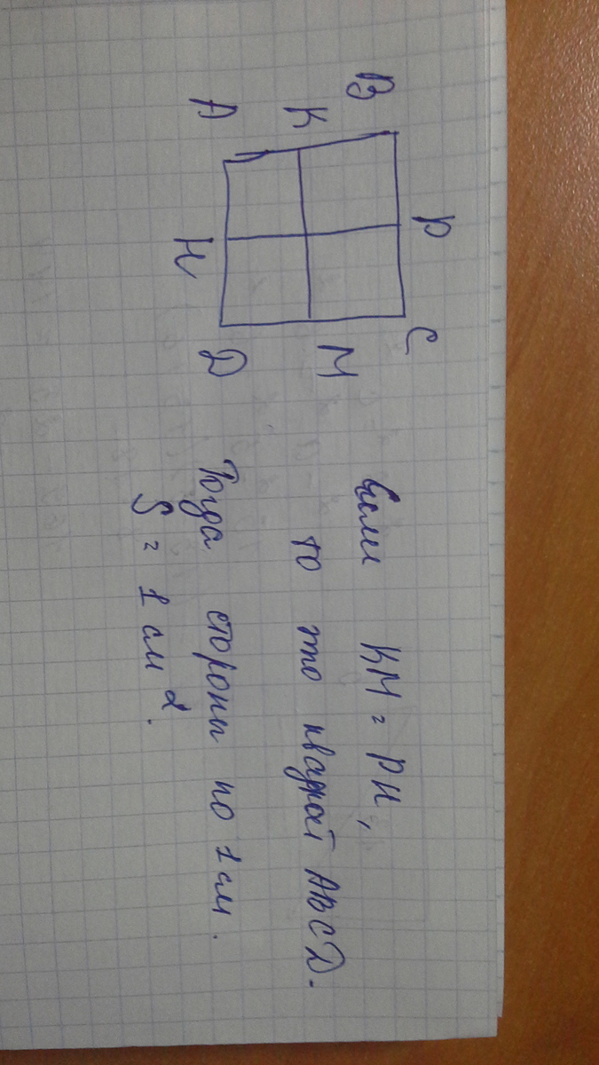 В четырехугольнике АВСД точки К,Р,М,Н-середины сторон АВ, ВС, СД, АД соответсвенно. отрезки КМ и РН равны 1. найти: угол КРН; площадь четырехугольника АВСД.