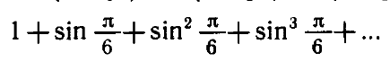 Заметим, что каждый последующий член данной суммы получен умножением предыдущего на одно и то же число - sin пи/6. Значит, это сумма членов геометрической прогрессии. Но не простой прогрессии, а бесконечно убывающей, поскольку q = sin пи/6 = 1/2 < 1. Значит, по формуле суммы бесконечно убывающей геометрической прогрессии имеем:
